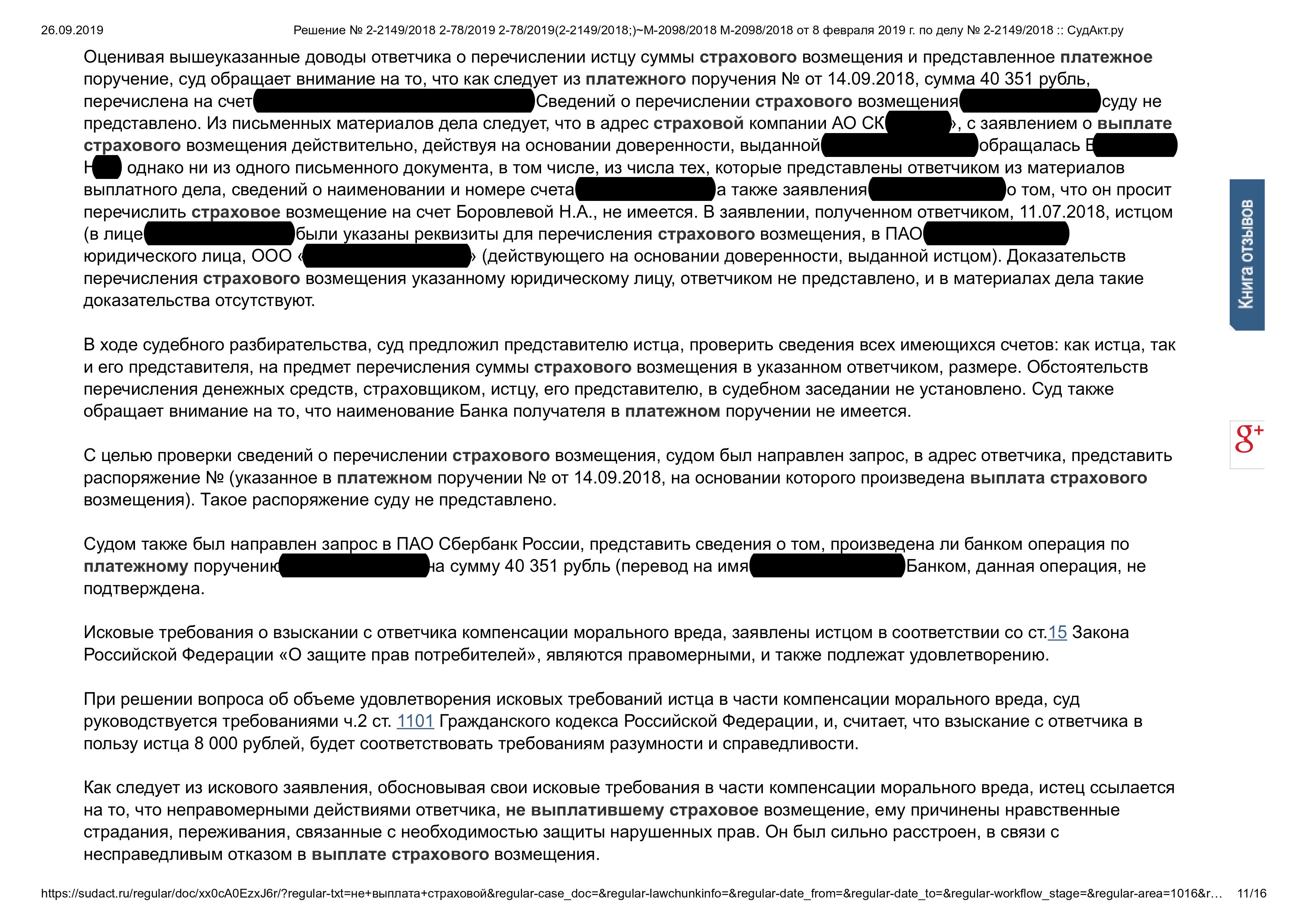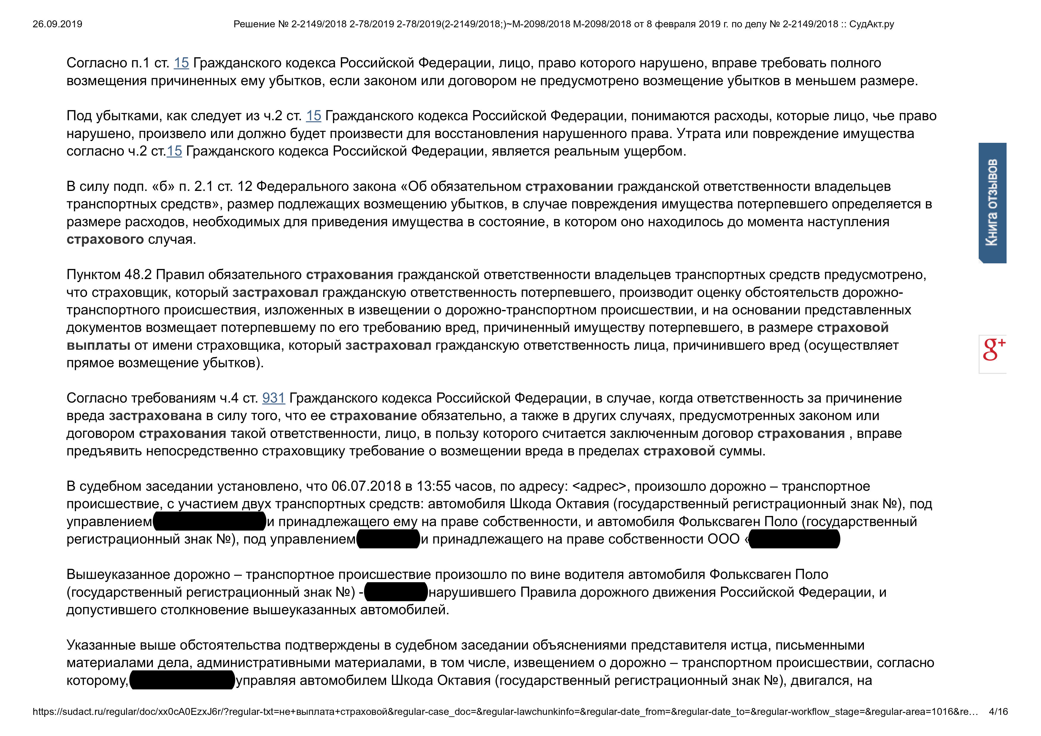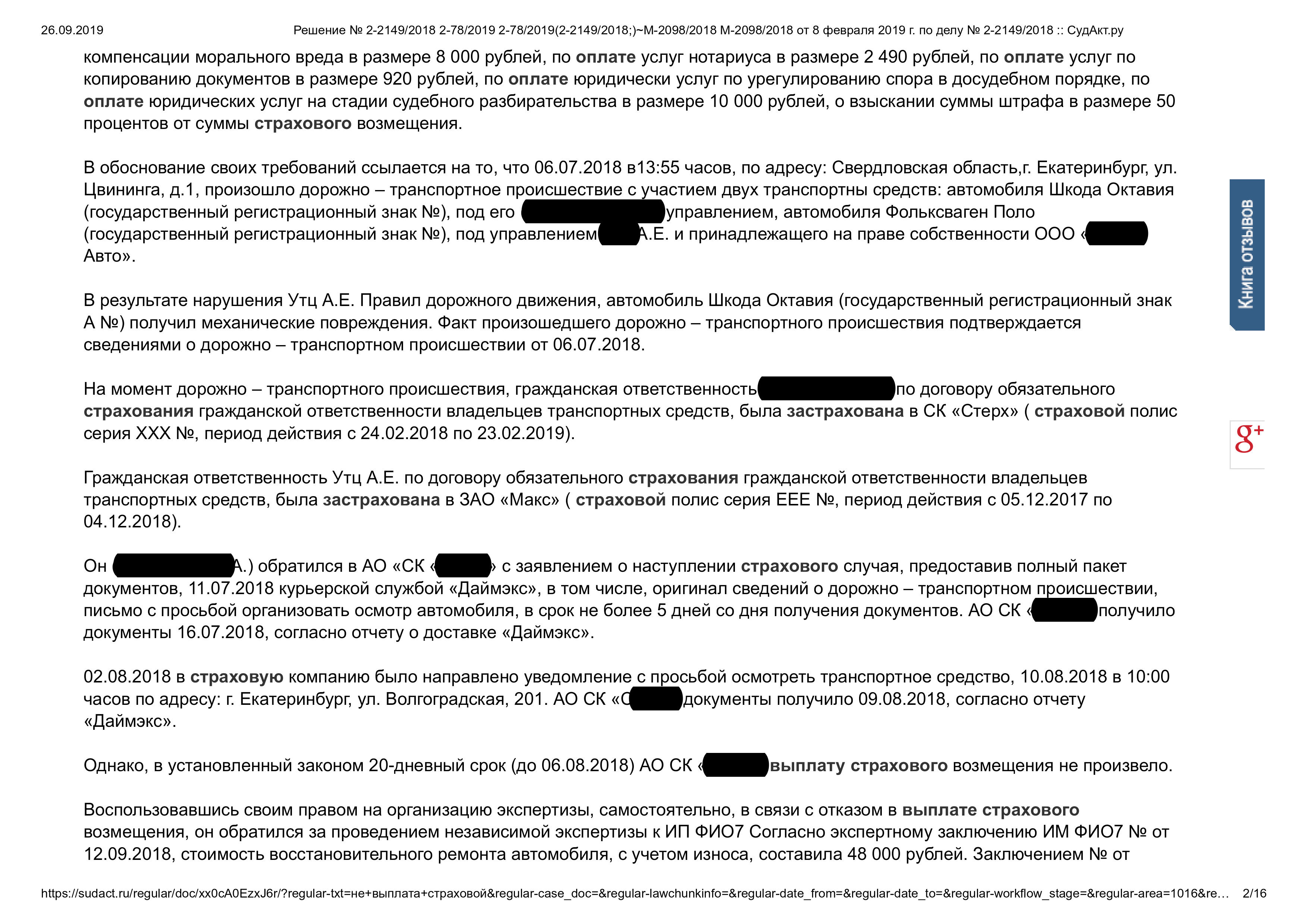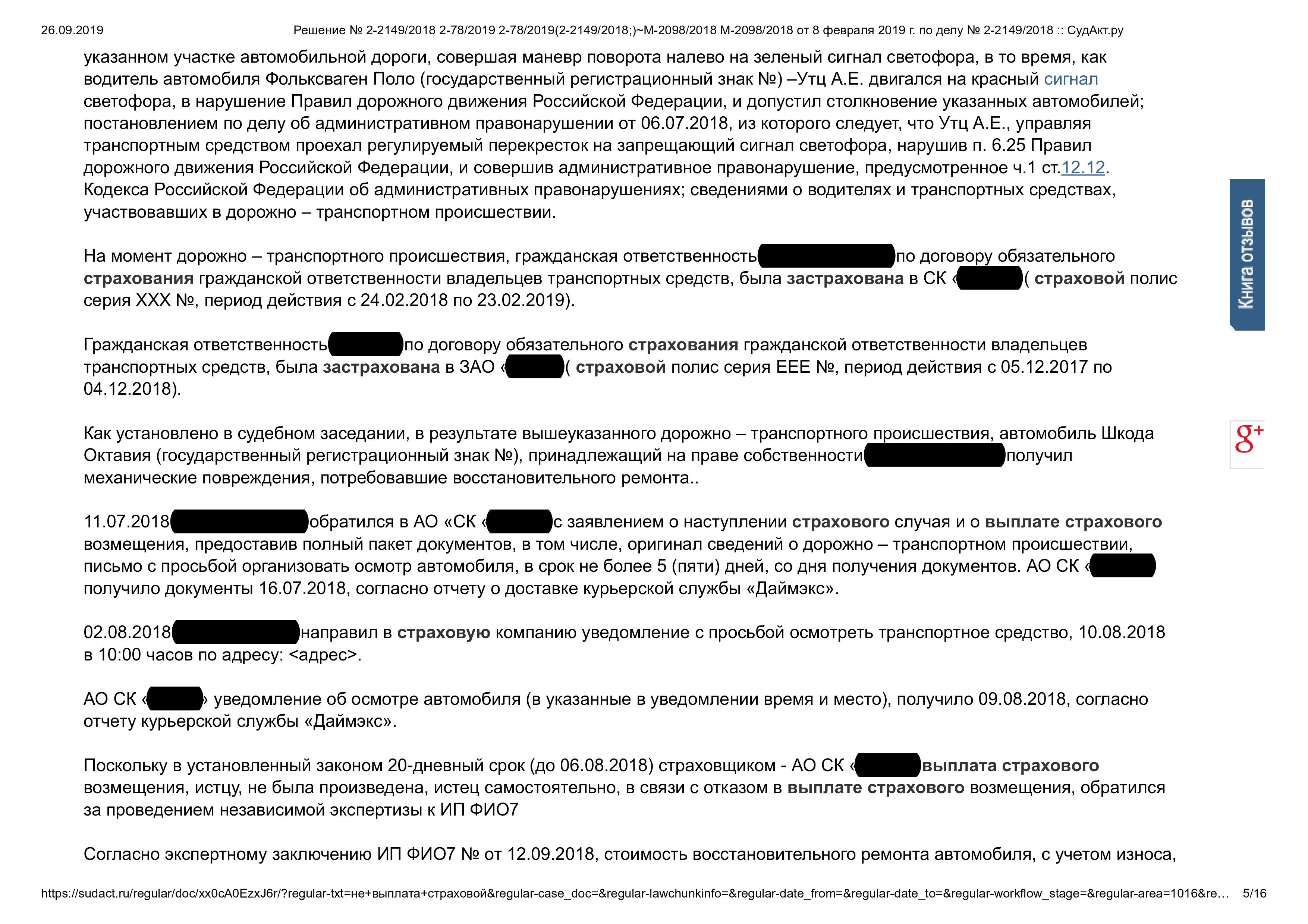 Требование к страховой компании о взыскании ущерба в результате ДТП