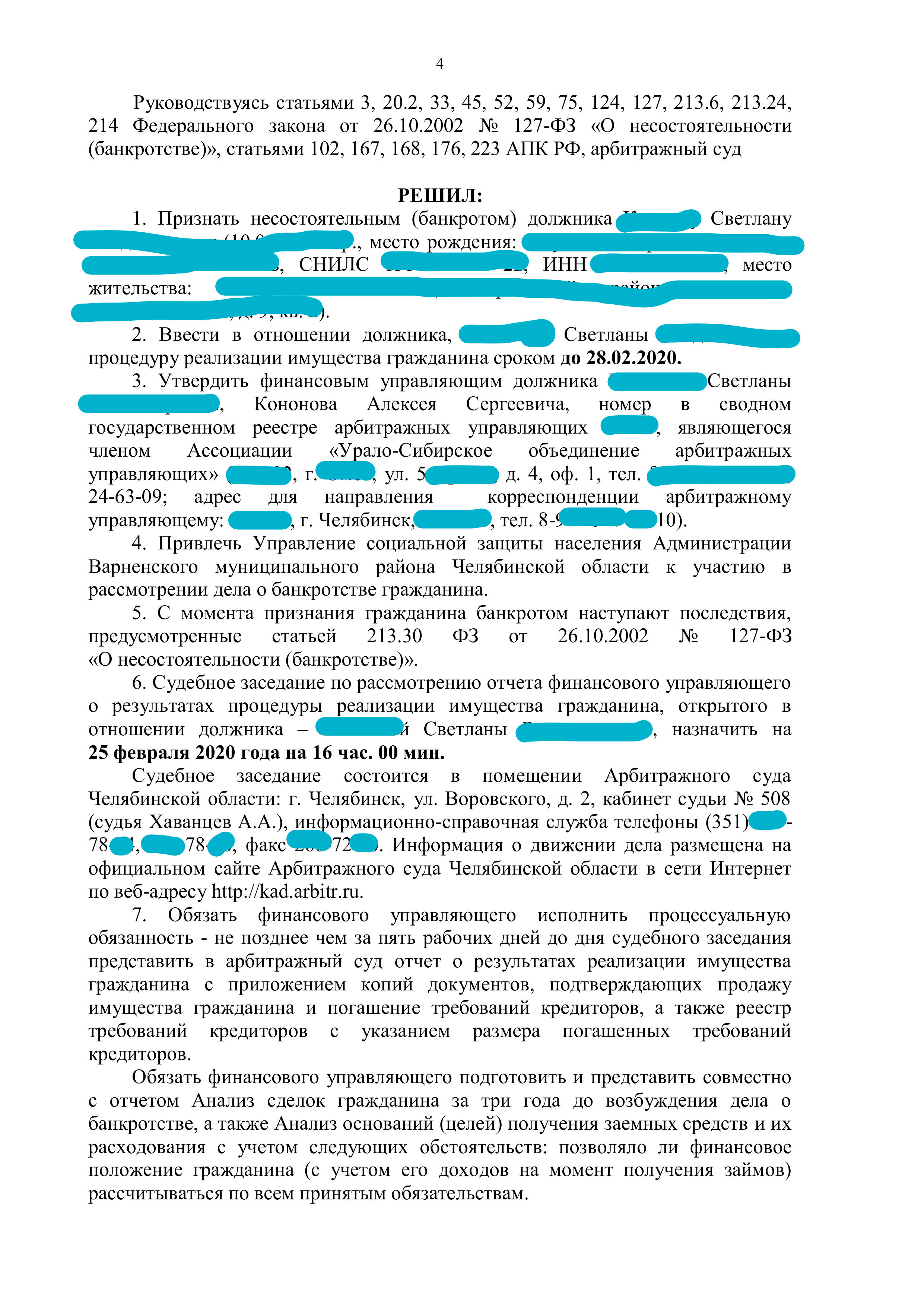 Арбитражный суд Челябинской области вынес решение признать Светлану несостоятельным (банкротом), что ведет за собой полное списание ее долгов.