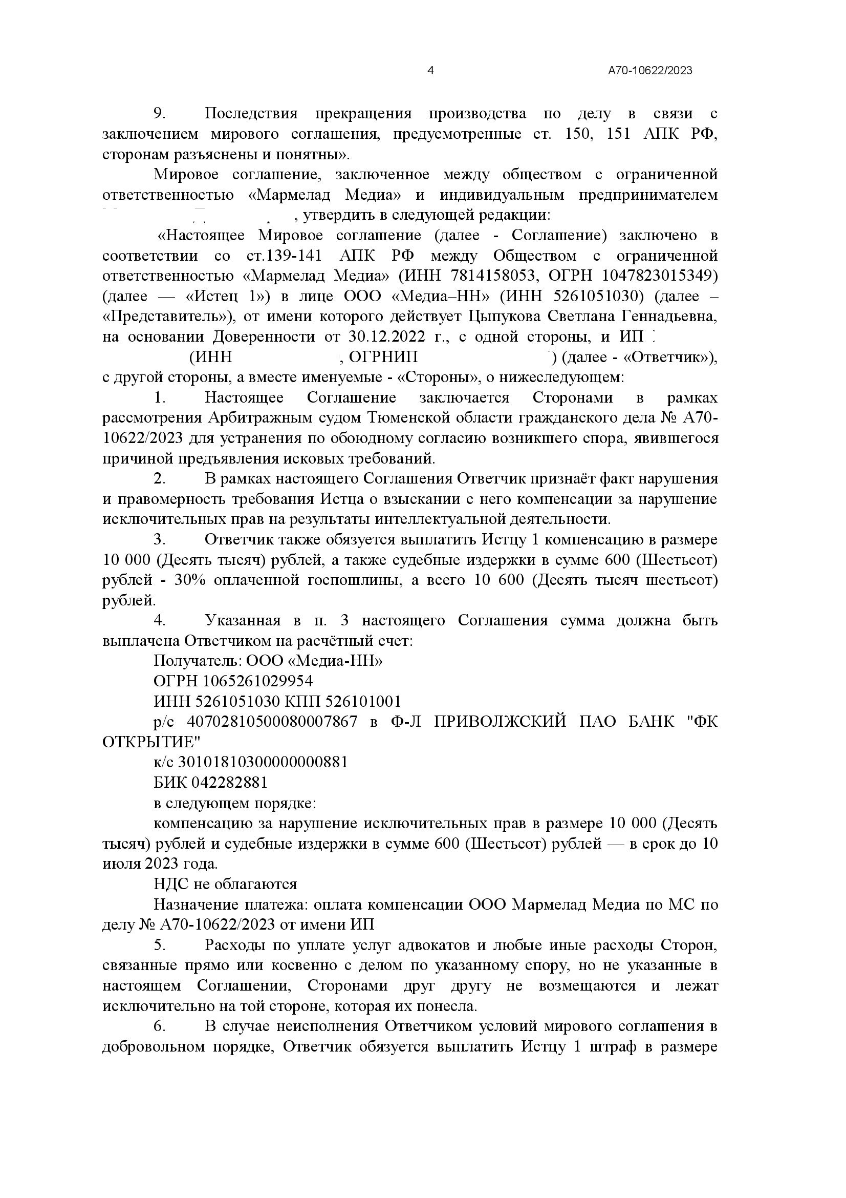 Наши юристы помогли заключить мировое соглашение и снизить сумму компенсации со 40 тыс. рублей до 20 тыс. рублей.