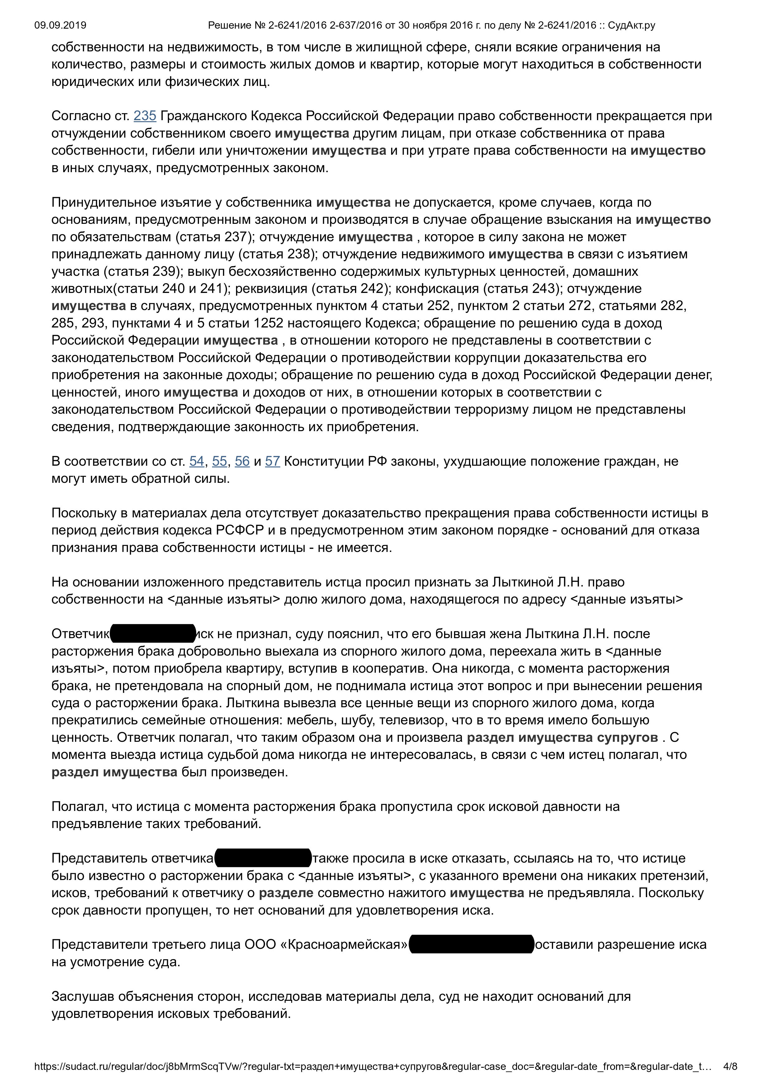 Раздел имущества – ответчики выиграли дело